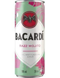 Der Alkoholgehalt des Bacardi Razz Mojito beträgt 10% vol.