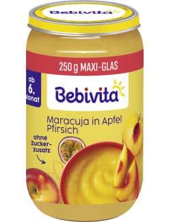 - Fruchtiger Joghurt: Mischen Sie Bebivita Früchte Maracuja in Apfel Pfirsich mit Naturjoghurt und verfeinern Sie es mit etwas Getreidebrei.