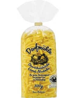 Die Dorfmühle Land-Nudeln werden in einer traditionellen Mühle in Oberschwaben hergestellt. Hier werden die Nudeln mit viel Liebe zum Detail und nach traditionellen Rezepten gefertigt.