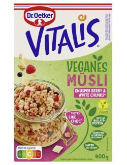 Transparenz ist uns wichtig! Hier findest du eine detaillierte Auflistung der Inhaltsstoffe des Dr. Oetker Vitalis Vegane Müsli Knusper Berry & White Chunks: