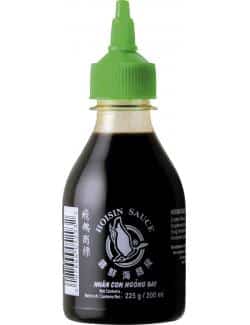 Hoisin Sauce ist eine dickflüssige, duftende Sauce, die häufig in der kantonesischen Küche verwendet wird. Sie hat eine dunkle Farbe und einen süßen, salzigen Geschmack. Sie wird aus fermentierten Sojabohnen, Knoblauch, Essig, Zucker und verschiedenen Gewürzen hergestellt.