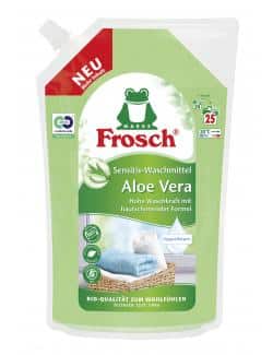 Darüber hinaus ist Frosch Sensitive Waschmittel Aloe Vera Flüssig auch in vielen Supermärkten und Drogerien erhältlich. Achten Sie auf das Frosch-Logo und die grüne Flasche mit der Aloe Vera Pflanze.