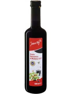 Der Aceto Balsamico di Modena I.G.P. von Jeden Tag steht für höchste Qualität und Authentizität. Die geschützte geografische Angabe (I.G.P.) garantiert Ihnen, dass dieser Balsamessig in der Region Modena nach traditionellen Methoden hergestellt wurde und den strengen Qualitätsstandards entspricht. Dies bedeutet, dass nur ausgewählte Weinessige und konzentrierter Traubenmost aus der Region verwendet werden dürfen und der Balsamessig in Holzfässern reifen muss.