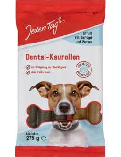 Wir alle lieben unsere Hunde und möchten nur das Beste für sie. Dazu gehört auch eine ausgewogene Ernährung und die richtige Pflege. Oftmals wird die Zahnpflege bei Hunden vernachlässigt, obwohl sie genauso wichtig ist wie bei uns Menschen. Plaque und Zahnstein können zu unangenehmen Entzündungen, Schmerzen und im schlimmsten Fall sogar zu ernsthaften Erkrankungen führen. Mit den Jeden Tag Hund Dental-Kaurollen können Sie dem auf schmackhafte Weise entgegenwirken.