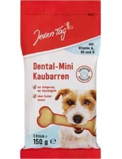 Jeden Tag Hund Dental-Mini Kaubarren sind eine ideale Ergänzung zur täglichen Zahnpflege Ihres Hundes. Sie ersetzen jedoch nicht das regelmäßige Zähneputzen beim Tierarzt oder mit einer speziellen Hundezahnbürste. Betrachten Sie die Kaubarren als eine zusätzliche Möglichkeit, die Zahngesundheit Ihres Hundes zu fördern und ihm eine Freude zu bereiten.