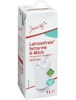 Die Jeden Tag Laktosefreie fettarme H-Milch 1,5% enthält folgende Inhaltsstoffe: