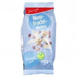 Die Nuss-Frucht-Mischung enthält von Natur aus Zucker aus den Früchten. Es werden keine zusätzlichen Zucker zugesetzt. Bitte beachte die Nährwertangaben auf der Verpackung für detaillierte Informationen.