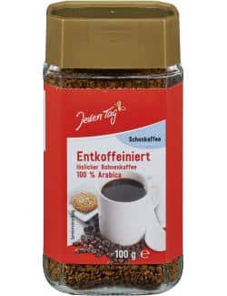 Geniessen Sie jeden Tag einen Moment der Ruhe und Entspannung – mit Jeden Tag Schonkaffee Entkoffeiniert, Ihrem zuverlässigen Begleiter für genussvolle Kaffeemomente, ganz ohne Koffein. Dieser lösliche Bohnenkaffee vereint vollen Geschmack mit sanfter Bekömmlichkeit und bietet Ihnen die Freiheit, Kaffee zu trinken, wann immer Ihnen danach ist.