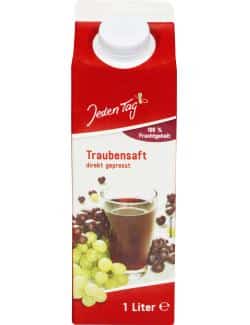 Der Jeden Tag Traubensaft besteht hauptsächlich aus Trauben. Allergiker sollten die Zutatenliste auf der Verpackung beachten. Bei einer bekannten Traubenallergie sollte auf den Konsum verzichtet werden.