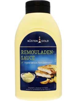 Die Küstengold Dänische Remouladen-Sauce enthält Mayonnaise, Gewürzgurken, Kapern, Kräuter, Gewürze und Senf.