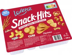 Lorenz Snack Hits enthält eine vielfältige Mischung aus verschiedenen Knabberartikeln, darunter: