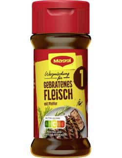 Haben Sie sich jemals gefragt, wie Sie Ihren Sonntagsbraten oder Ihre Grillabende noch schmackhafter gestalten können? Mit der Maggi Würzmischung für gebratenes Fleisch ist die Antwort ganz einfach. Diese sorgfältig abgestimmte Mischung aus natürlichen Kräutern und Gewürzen verleiht Ihrem Fleisch eine unvergleichliche Würze und einen aromatischen Duft, der schon beim Zubereiten das Wasser im Mund zusammenlaufen lässt.