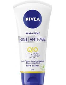 Unsere Hände sind täglich zahlreichen Belastungen ausgesetzt – Kälte, Sonne, Wasser und Reinigungsmittel können die Haut austrocknen und vorzeitig altern lassen. Die Nivea 3in1 Anti-Age Q10 Hand Creme bietet intensive Pflege, Schutz und hilft, die Zeichen der Zeit sichtbar zu reduzieren. Gönnen Sie Ihren Händen die Aufmerksamkeit, die sie verdienen, und erleben Sie den Unterschied.