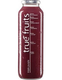 - Gekühlt genießen: True Fruits Smoothie Triple Purple schmeckt am besten gekühlt. Stelle die Flasche vor dem Genuss in den Kühlschrank oder gib ein paar Eiswürfel in dein Glas.